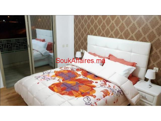 Nous vous proposons en location à l'année un appartement haut standing bien meublé avec soin tout neuf, d'une superficie de 100m² situé au 2ème étage dans une résidence entourée d'un espace vert, sécurisée et bien placé proche du centre avec un accès facile de transport, il se compose de: -une chambre parentale avec balcon et avec sa SDB; -une chambre pour enfant; -une toilette des invités; -un salon moderne avec balcon; -un séjour; -un coin salle à manger; -une cuisine entièrement équipée; la résidence est avec ascenseur et dispose une piscine commune. Ref. : 3119 Tel : 0669688611