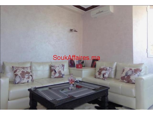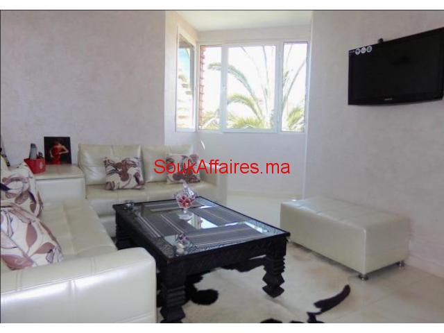 Bel Appartement entièrement rénové, lumineux, bien équipé en location meublée en longue durée, dans un immeuble calme à proximité de la clinique internationale à Bab Ighli, Il se compose d'un double salon dont un transformable en chambre et une belle chambre avec balcon et vue sur jardin et dressing, salle de bain, cuisine moderne équipée ouverte sur le salon, et une superbe et grande terrasse privative avec pergola. réf:2849 Tel : 0669688611