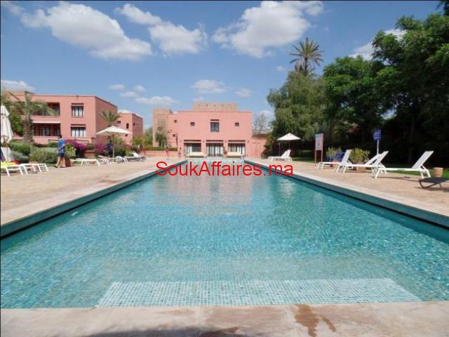 Bel et spacieux appartement en location longue durée meublé, d'une superficie de 130 m², situé dans une résidence avec piscine et beau jardin, proche de Amelkis, se compose de 2 chambres chacune avec sdb et dressing, salon avec cheminée, terrasse avec vue sur l'Atlas, cuisine équipée, buanderie, climatisation, coin à manger, toilette invités. (charges de syndic comprises) réf:3063 Tel : 0669688611