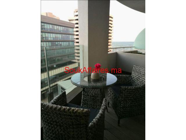 Beau studio meublé neuf à la Marina. Se trouvant dans une résidence fermée et bien sécurisée de prestige, il se compose d’un salon moderne avec table à manger ouvert sur la terrasse, d'une chambre à coucher avec dressing et salle de bain intégrés, d'une cuisine américaine et d'une terrasse avec vue imprenable sur la mer. Mobilier de haut standing Neuf et jamais habité. Clim / chauffage centralisé, domotique, parquet en bois massif dans tout l’appartement. Étage élevé. Place au garage. Tel : 0614616620