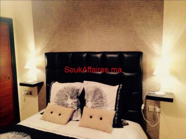 à louer bel appartement meublé, situé au 3 éme étage dans une résidence sécurisée, avec piscine à Av Abdelkrim El Khttabi, l'appartement se compose comme suit: deux chambres dont une avec terrasse, 1 sdb avec wc, 2 ème toilette invités, salon avec terrasse, et cuisine. (charges de syndic comprises) réf:3157 Tel : 0669688611