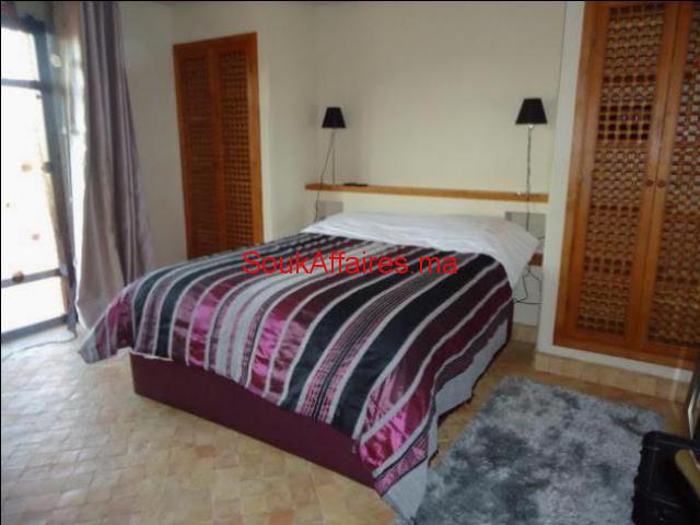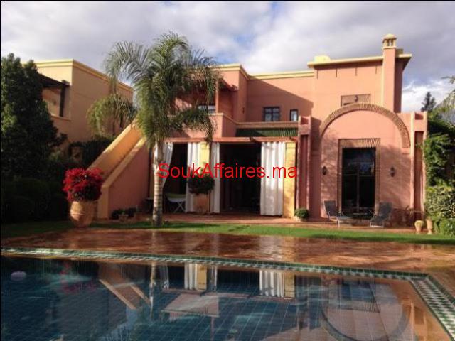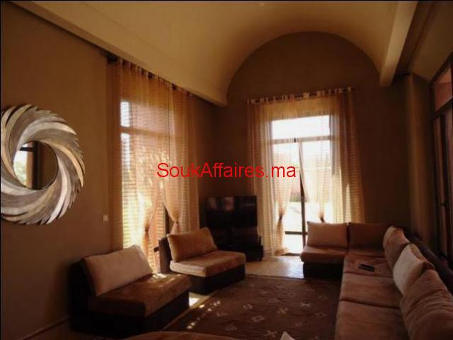 villa meublée en location longue durée qui sera disponible à partir du 1er octobre à Samanah, km 17 sur la Route d'Amizmiz. Cette villa climatisée offre 3 chambres, 1 avec baignoire et deux avec douche, une cuisine équipée (frigidaire, four, lave vaisselle, machine à laver), un séjour, 1 salon. En extérieur, une piscine privative sur un jardin arboré de 1350 m² sans vis à vis. Ref. : 3161 Tel : 0669688611
