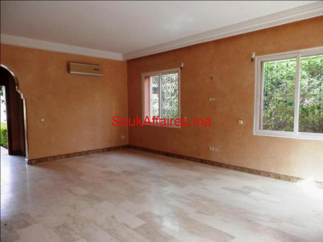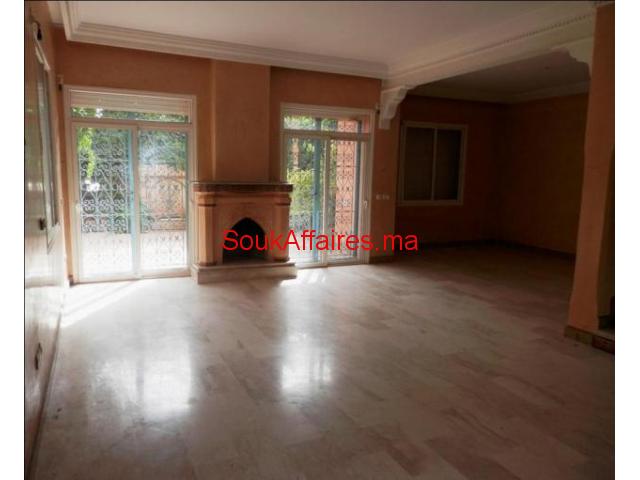 Jolie villa avec jardin à la location vide, dans une résidence sécurisée avec piscine collective à Targa, proche de toutes commodités. Cette Villa se compose comme suit: RDC : un séjour, une cuisine semi-équipée, un débarras, Salon avec cheminée donnant sur le jardin, un salon marocain , un cabinet de toilettes invité. Climatisation centrale au 1 Étage: 3 chambres avec terrasses dont une suite avec SDB et Dressing Privatifs, Une SDB commune Climatisation, Garage prix 12500 dh / mois hors charges de syndic. Ref. : 3124 Tel : 0669688611