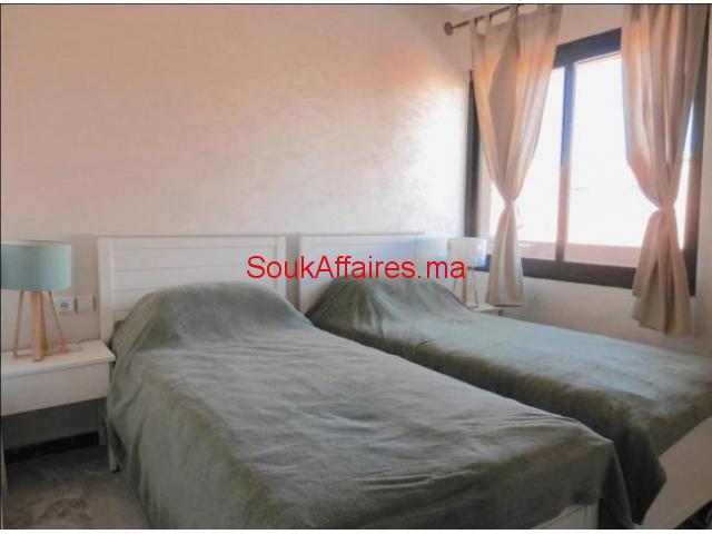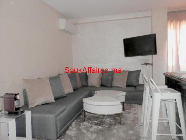 Bel Appartement en excellent état, à louer meublé et bien équipée de 68 m² situé au 5ème étage dans un immeuble calme avec piscine et prés de toutes les commodités. Il se compose: - un salon - 2 chambres à coucher dont une avec accès au grand balcon , - cuisine équipée,- balcon avec vue sur l'Atlas- salle de bain - WC, place au parking au sous sol. ( les charges de syndic comprises) réf:2935 Tel : 0669688611