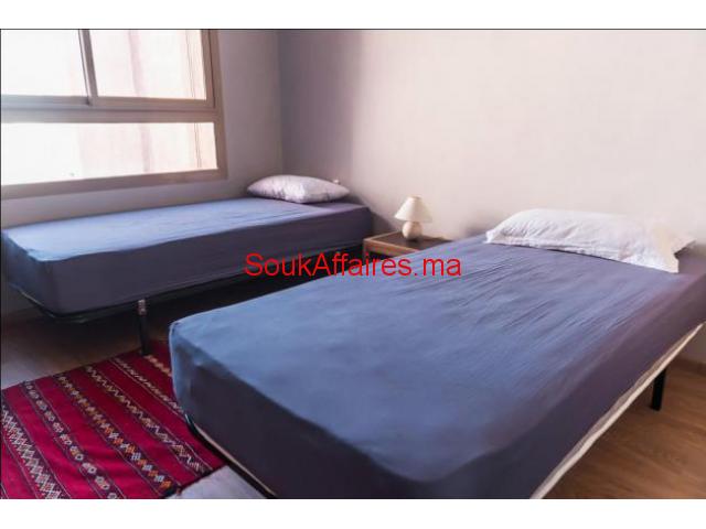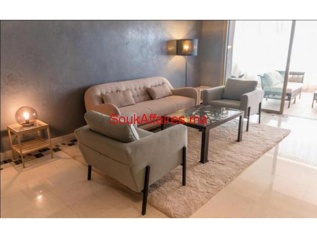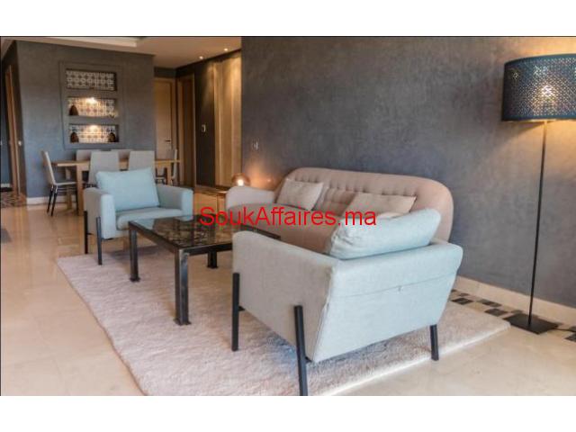 Luxueux appartement en location longue durée meublé, situé dans une résidence de standing sur le golf du Prestigia. Ce magnifique appartement est composé de : Un salon européen avec coin cheminée, accès au terrasse, salle à manger, deux chambres dont une suite parentale avec sdb et terrasse vue sur la piscine et le golf, la 2 ème chambre avec sdb, cuisine équipée, toilette invités et place parking. réf:3147 Tel : 0669688611