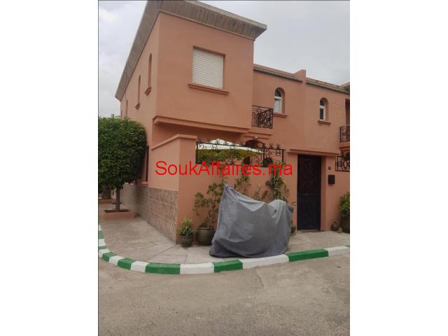 REF:026S/018 Location joli petite Villa deux façade de 140 m² de Terrain située dans un quartier calme et sécurisé sur la route de fes a 10 Min de centre gueliz . Elle se compose : 1 etage :de salle de séjour ,SDD, un salon et un hall , cuisine et et deux jardins . Deuxième étage : 3 chambres, SDD, dressing et deux balcon prix de location meublé :8500 Dhs. Prix de location non meublé : 6000 Dhs. Tel : 0524331662