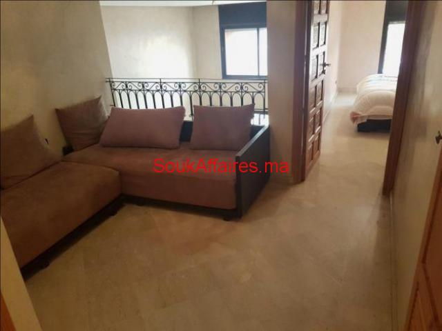Ref:026R/018A louer superbe appartement/duplex e usage bureau ou longue durée de 90m2 situé au quartier victor Hugo de Marrakech dans une résidence calme, sécurisée avec ascenseur, l'appartement est composé d'un grand salon ,1 cuisine équipée 2 chambres avec placards, 2 Salles de bain , appartement équipé de climatiseurs réversibles, volets roulants, toutes les commodités au pied de la résidence: restaurant, épicerie, supermarché, pharmacie..., de plus l'appartement dispose d'une place de parking Loyer:6000 dhs/mois pour plus des infos appelez-nous Tel : 0524331662
