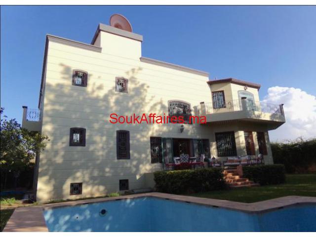 Trés belle villa sur 3 niveaux: Premier niveau :- Semi cave ensoleillée comprenant: Garage + chambre gardien - 2 chambres domestiques + Lavabo toilettes - Grande cuisine - 2 salons - débarras 2ème niveau : R.D.C: Salon marocain avec zellij fassie - Séjour - coin feu - Lavabos toilettes - Terrasse donnant sur un grand et beau jardin d'environ 800m² et une belle piscine. 3ème niveau Etage : 3 chambres avec balcons et grand placards - Salle de bains - Suite parentale (chambre à coucher - Salon - Grands placards - Salle de bains - Balcons ) Grande Terrasse sur les toits réf:2562 Tel : 0669688611