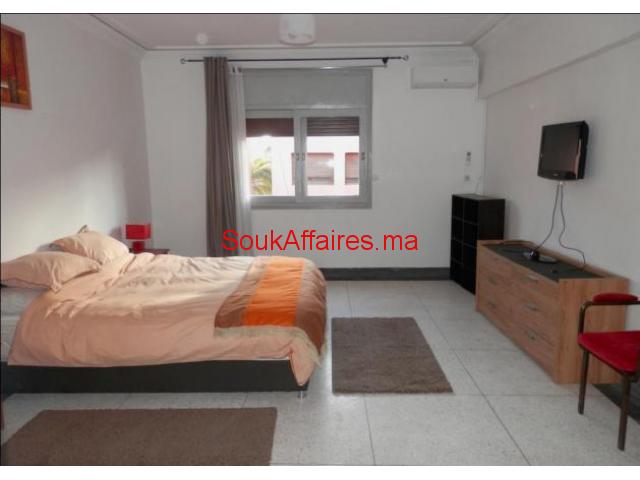 Spacieux et lumineux appartement meublé dans une villa à Semlalia de 3 appartements au Total, il se compose de: 3 chambres; dont 2 avec dressing et la 3ème aménagée en bureau actuellement Un double Salon avec coin séjour 2 SDB WC Grande Cuisine bien équipée. Terrasse sur les toits. Tel : 0669688611