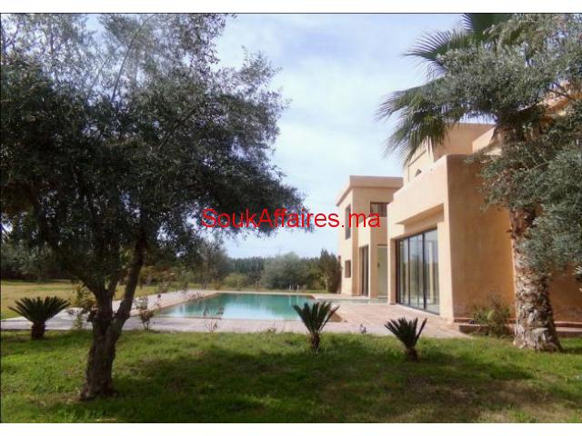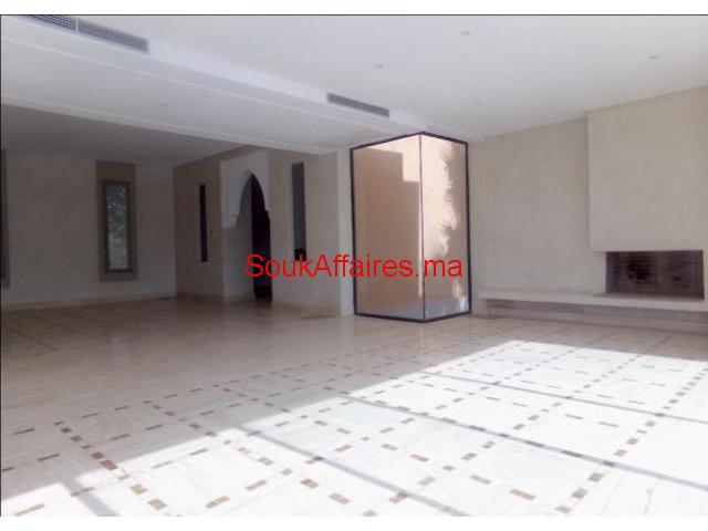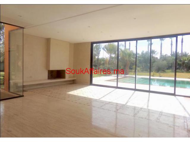 À Louer au coeur d'un domaine privé et sécurisée Sur 6 ha, formé de 12 villas d’exception à 16 km par rapport à l’agitation de la ville, et à proximité des golfs cette Superbe Villa de Maître, de style moderne avec une légère et très jolie touche marocaine épurée et de très beaux volumes , sur 7000 m² de jardin et une belle piscine privée sur la route de Ouarzazate à seulement 20mn en voiture du centre ville, elle contient: AU RDC: - Salon marocain - Un grand salon européen avec cheminée et de belle baies vitrées donnant sur le jardin et la piscine -Coin salle à manger - Cuisine - 1 belle chambre invitée avec sdb avec baignoire et terrasse avec vue sur le jardin A L’ÉTAGE: -2 CHAMBRES AVEC leurs SDB et dressing dont une avec terrasse - Une magnifique Suite parentale avec sdb (avec baignoire et douche, double vasques) et immense dressing et une grande terrasse privative offrant une sublime vue sur les jardins la piscine et l'Atlas. Loge du gardien Jardin Privatif d'environ 6500m² réf:2799 Tel : 0669688611