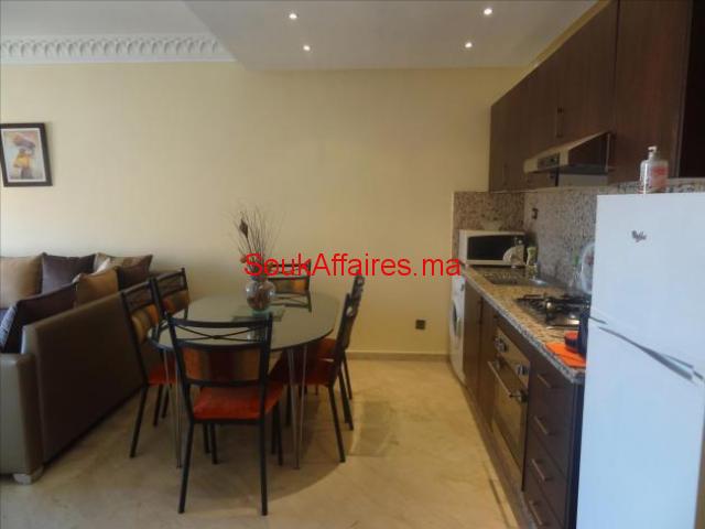 Nous proposons en location longue durée un joli appartement de 52m2, meublé avec soin, ensoleillé situé dans un quartier résidentiel calme vers quartier Victor Hug, composé comme suit: - un salon avec balcon dispose une climatisation; -Une chambre à coucher avec balcon et placard, dispose une climatisation; - un SDB; - Une cuisine équipée ( Machine à laver; micro onde, Plaquet, four....) -Un coin salle à manger. Le tout est équipé avec soin. Loyer : 5000 dh/mois charges comprises, Ref. : 1821 Tel : 0669688611