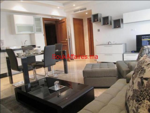 Studio d’exception de très haut standing, de 65 m² avec un grand balcon, meublé sur un étage élevé, et bien ensoleillé, située au cœur du quartier Racine, dans un immeuble prestigieux. Il se compose: d’un salon moderne avec une table à manger donnant sur un bacon, une chambre à coucher avec placards, une salle de bain avec baignoire, une cuisine moderne totalement équipée (réfrigérateur, four, plaques de cuisson, hotte, …). Immeuble propre, bien entretenu, et sécurisé (Gardiennage 24/24h) avec une place au garage, et proche de toutes commodités. N.B: Pour une longue durée. Tel : 0614616620