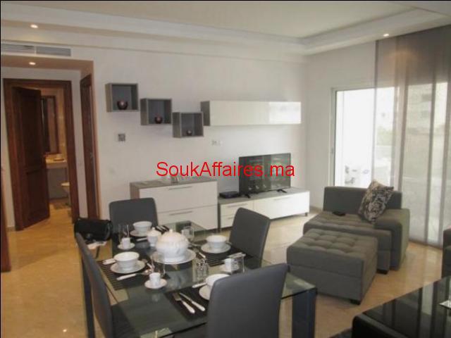 Studio d’exception de très haut standing, de 65 m² avec un grand balcon, meublé sur un étage élevé, et bien ensoleillé, située au cœur du quartier Racine, dans un immeuble prestigieux. Il se compose: d’un salon moderne avec une table à manger donnant sur un bacon, une chambre à coucher avec placards, une salle de bain avec baignoire, une cuisine moderne totalement équipée (réfrigérateur, four, plaques de cuisson, hotte, …). Immeuble propre, bien entretenu, et sécurisé (Gardiennage 24/24h) avec une place au garage, et proche de toutes commodités. N.B: Pour une longue durée. Tel : 0614616620