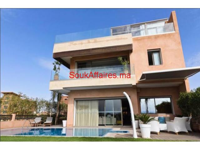 Magnifique villa toute neuve, de style contemporain bien située à Argan Golf Resort, sur 500 m² de terrain et 420 m² de superficie habitable, avec beau jardin une piscine privative avec vue sur le golf, une salle de sport, et hammam. La villa comprend: - salon moderne, salon marocain, séjour avec cheminée, - 6 chambres dont une suite parentale avec sdb, 2 autres sdb, cuisine entièrement équipée. -Une terrasse véranda dont on peut profiter été comme hiver de la magnifique vue sur le golf et l'Atlas. La villa a été conçue et réalisé avec beaucoup de goût et des matériaux de grande qualité. réf:2589 Tel : 0669688611