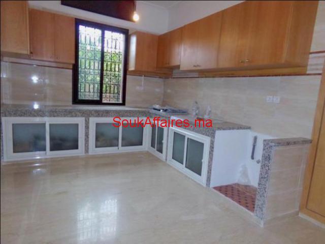 Villa toute neuve,à louer vide avec 3 façades plus plus de 450 m² de terrain avec un beau jardin, elle se compose de: Sous-Sol: grande chambre donnant sur la cour avec SDB et pièce pour le rangement. -RDC: 1salon avec accès au jardin et coin salle à manger Chambre avec sdb Grande Cuisine semi équipée Toilette visiteurs avec Douche -À L'étage: 4 chambres dont une suite parentale avec terrasse, chacune avec sa SDB et dressing Une belle terrasse avec un petit studio qui contient chambre avec balcon et SDB toutes les pièces sont climatisées Logement pour le gardien dans le jardin et garage pour 3 à 4 voitures. Villa avec double accès et dans un excellent état. réf:2041 Tel : 0669688611