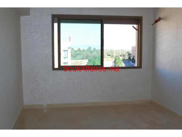 salut, on vous offre un joli appart Angle et sans vis a vis de 85m² et 11 m² de terrasse, se compose : d'un salon marocain et un séjour européen,2 chambre dans suite parentale avec grand placard et salle de bain cuisine équipé avec petite salle à manger et un grand biandrie et autre salle de bain italien pour les invités,une moderne architecture et pas de vis à vis , emplacement très agréable vue sur un aspect panoramique palmeraie écologique et près de commodité et de service quotidiens . n'hésitez pas à nous contacter pour plus d'information merci Tel : 0666888462