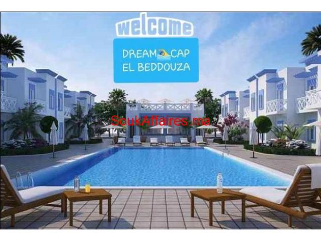 promotion a ne pas rater 295000 dh au lieu de 315000 dh on vous propose des appartement de reve a seulement quelques minutes du centre de Safi et à mi-chemin entre EL OUALIDIA et la ville desafi , les somptueux appartements DREAM CAP EL BEDDOUZA mettent à votre disposition toutes les commodités pour vous assurer un cadre de vie raffiné et reposant. Ce projet immobilier d'exception est réalisé sur une superficie de «12000m», comprend des appartements spacieux, 65m et 70m avec une vue imprenable sur, mer, piscine et jardin. • 80 appartements • 4 appartements par étages •8 appartements par immeuble •R+1 Rez de chaussé + étage Supperficie : ▪65m 2 chambres salon cuisine américaine équipée 2 Salles de bain Balcon ▪70m 2 chambres salon cuisine américaine équipée 2 Salles de bain Balcon Avantages et équipements : • Parking aérien • 2 piscines • Cuisine américaine équipée Terrasse avec vue sur mer, piscine ou jardin • Aire de jeux pour les enfants • 60% d'espaces verts • Café-restaurant • Supermarché À proximité : • Centre de safi à 15 min • Centre d'el oualidia a 20 min • Station d'essence à 2 min • Sortie de l'autoroute safi à 20 min