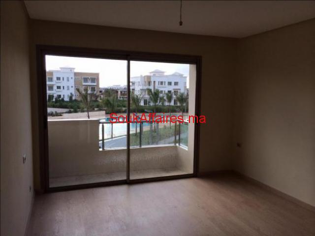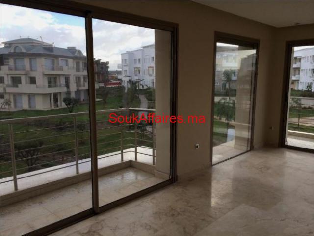 Bél Appartement meublé - Surface :147 m2 (131m2+16m2) Bouskoura Golf City . Un salon, hall, coin feu, trois chambres, cuisine buanderie, deux salles de bain, toilette dressing + 1place au parking +1 box Tel : 0696832232