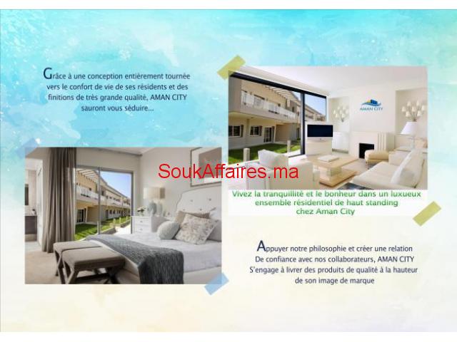RESIDENCE AMAN CITY SIDI RAHAL Proposer des biens immobiliers luxueux, adaptés et originaux, sur des sites uniques dotés d’équipements intégrés avec un rapport qualité/prix inégalé. Telle est la mission de AMAN CITY, notre marque d'immobilier de prestige. Des appartements F1 et F2 de 50M jusqu'à 118M avec des terrasses (moitie prix) Finition moyen standing avec piscine et terrain de tennis Projet se situe a 400m de la plage juste a cote OLA BLANCA Projet finance par CIH bank Tel : 0661195066