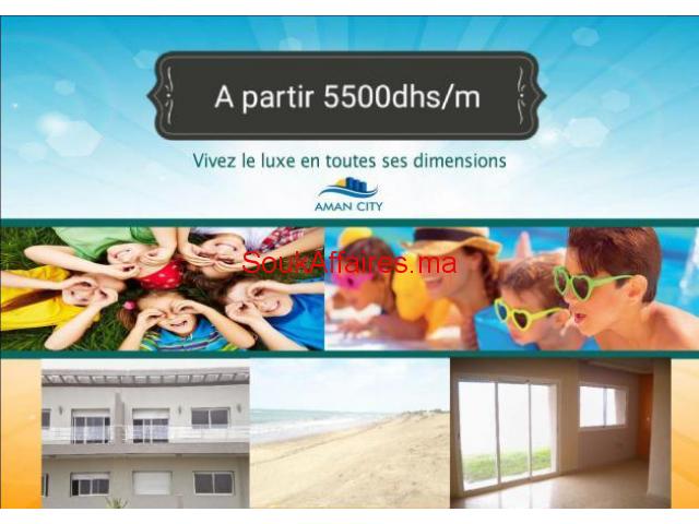 Vrai havre de paix et de bonheur, à sidi rahal, la residence AMAN CITY Beach vous présente enfin l’opportunité d’acquérir l’appartement de vos rêves à un prix exceptionnel. comporte des appartements répondent aux plus hautes exigences de qualité. Cuisines équipés, matériaux nobles, architecture contemporaine, tous les détails sont pris en compte pour vous assurer confort et bien-être. Admirez la vue magnifique sur les piscines et jardins paysagers, et laissez-vous emporter par une ambiance agréable et paisible à un prix très accessible que 5500dh/m². Plus d'informations, n'hésitez pas à nous contacter Tel : 0661195066
