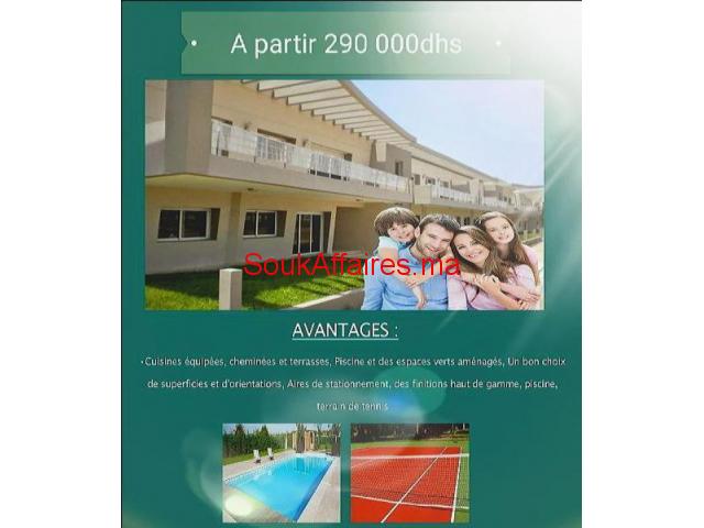 RESIDENCE AMAN CITY SIDI RAHAL Aman city vous offre un programme pensé pour votre confort dans un luxe raffiné telle que SIDI RAHAL et aussi dans des lieux uniques jouissants d'un environnement exceptionnel. Des appartements F1 et F2 de 50M jusqu'à 118M avec des terrasses (moitie prix) Finition moyen standing avec piscine et terrain de tennis Projet se situe a 400m de la plage juste a cote OLA BLANCA Projet finance par CIH bank Tel : 0661195066