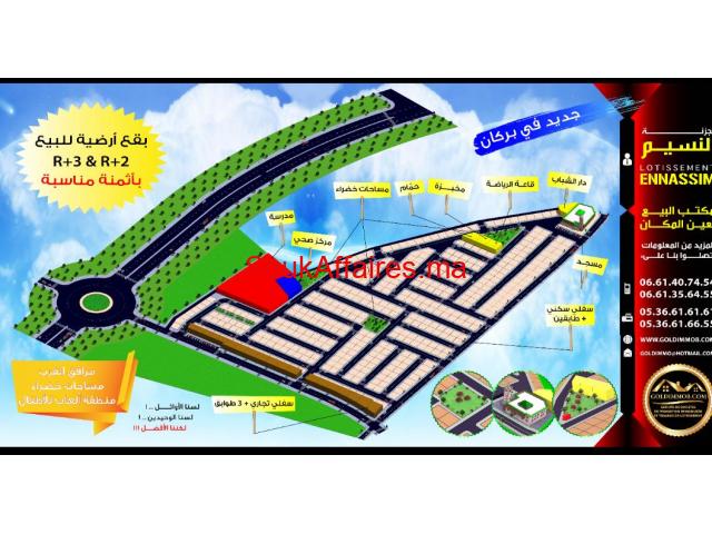 Lotissement Ennassim Ouartas Berkane Lotissement ENNASSIM propose des lots de terrains, titrés et prêts à construire, autorisés en R+2 & R+3. A partir de 2700 dhs/m2, un investissement rentable! Tel : 0661050047