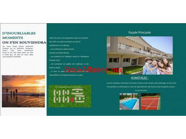 RESIDENCE AMAN CITY SIDI RAHAL Parce qu’acheter a RESIDENCE AMAN CITY SIDI RAHAL, c’est bien plus qu’acquérir une maison : c’est trouver son bonheur. Des appartements F1 et F2 de 50M jusqu'à 118M avec des terrasses (moitie prix) Finition moyen standing avec piscine et terrain de tennis Projet se situe a 400m de la plage juste a cote OLA BLANCA Projet finance par CIH bank Tel : 0661195066