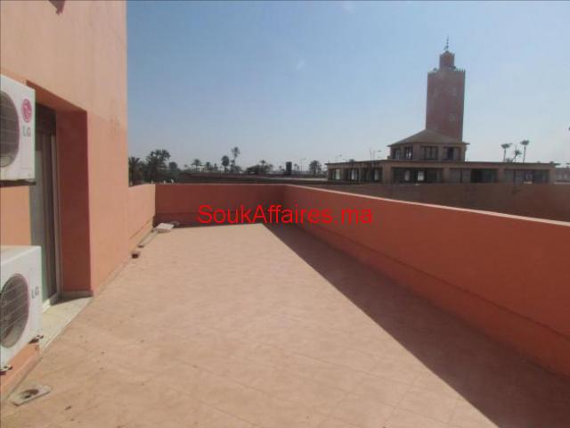 REF : 0107S/017 En vente un appartement ensoleillé superficie de 89 m² + une terrasse de 49 m² au premier étage d’un immeuble de standing. Situé au Majorelle-BOKAR, à 10 min de centre ville. Se compose de : 1 Salon de 24 M², chambres avec placards donnant sur une belle terrasse de 49 M² ,1 chambre avec placards , Cuisine équipée, 1SDD, W.C des invités . Toutes les pièces sont climatisées, Place Parking sous-terrain de 15 m². Proche de toutes commodités. très bon voisinage Prix de vente 9250 dhs/M² Tel : 0524331662