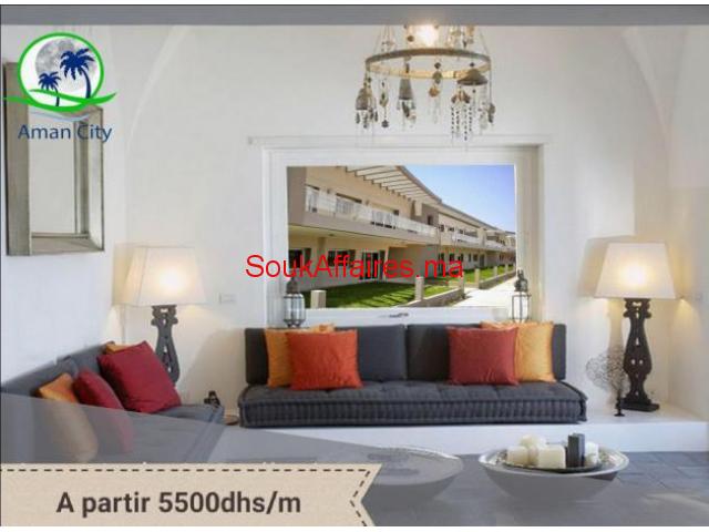 RESIDENCE AMAN CITY SIDI RAHAL Proposer des biens immobiliers luxueux, adaptés et originaux, sur des sites uniques dotés d’équipements intégrés avec un rapport qualité/prix inégalé. Telle est la mission de AMAN CITY, notre marque d'immobilier de prestige. Des appartements F1 et F2 de 50M jusqu'à 118M avec des terrasses (moitie prix) Finition moyen standing avec piscine et terrain de tennis Projet se situe a 400m de la plage juste a cote OLA BLANCA Projet finance par CIH bank Tel : 0661195066
